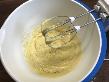 - Wenn die Kekse noch eine schönere Farbe bekommen sollen, könnt ihr auch noch einen Kleks gelbe Lebensmittelfarbe dazugeben. Ansonsten sind sie eher blass und unscheinbar.