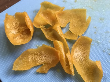 - Wenn die Früchte schon sehr weich sind, kann man das Abreiben der Schale vergessen. Ich empfehle sie dann vorsichtig mit dem Messer anzustechen und durch ein Sieb auszudrücken um den Saft zu bekommen. Dann die leere Schale aufschneiden und innen vorsichtig mit dem Messer abschaben um die Reste des Fruchtfleisches loszuwerden. Die verbleibende Schale dann fein hacken.